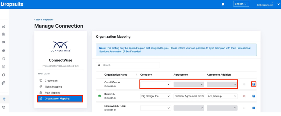 A Complete Partner Setup in ConnectWise and integrating it into Dropsuite