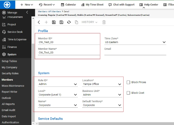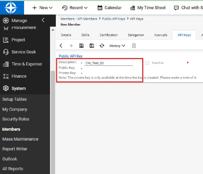 - Fill out the required information. You can utilize a Custom Role in the Role ID field. For guidance on creating a new Role, refer to the Setting Up a New Security Role in ConnectWise documentation.