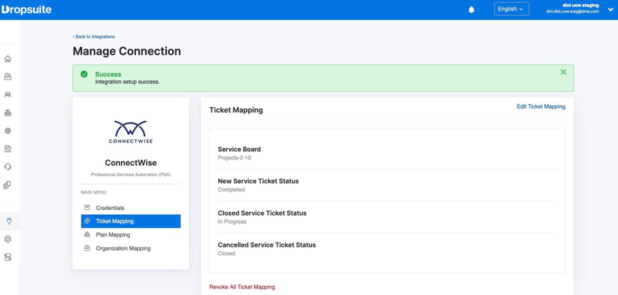 - If you click the Revoke All Ticket Mapping button, it is essential to note that this action will only reset the ticket mapping form. Your ConnectWise connection will remain unaffected by this action.