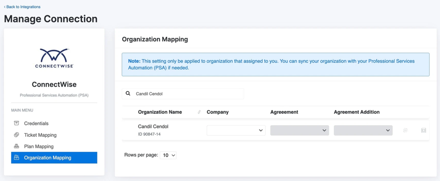 Step 6: Edit an Existing Organization and Map with ConnectWise