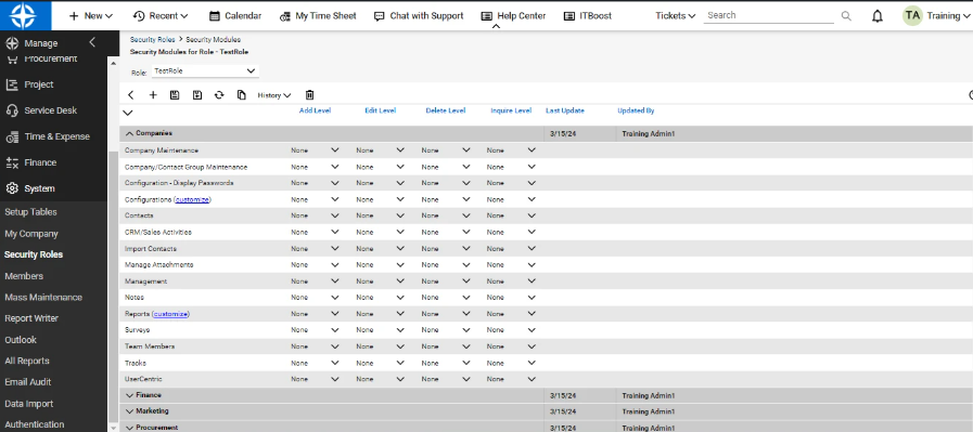 Service Desk > Service Tickets - Finance > Add, Edit, Inquire